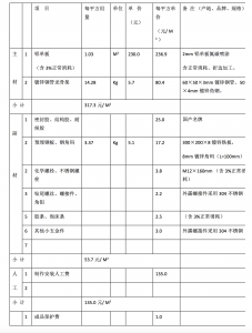 說明:本組價表以確認的幕墻施工圖為計算依據